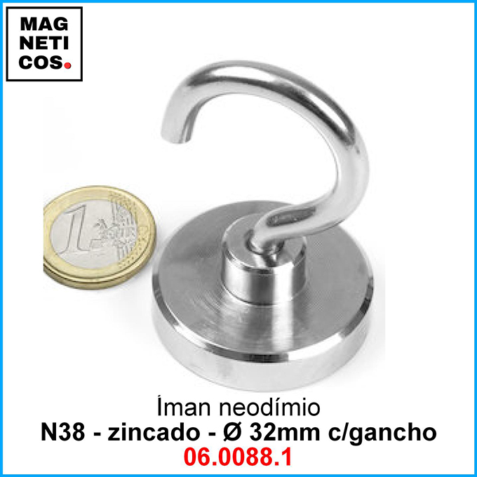 Íman Neodímio N38 com Gancho-INCLUI IVA