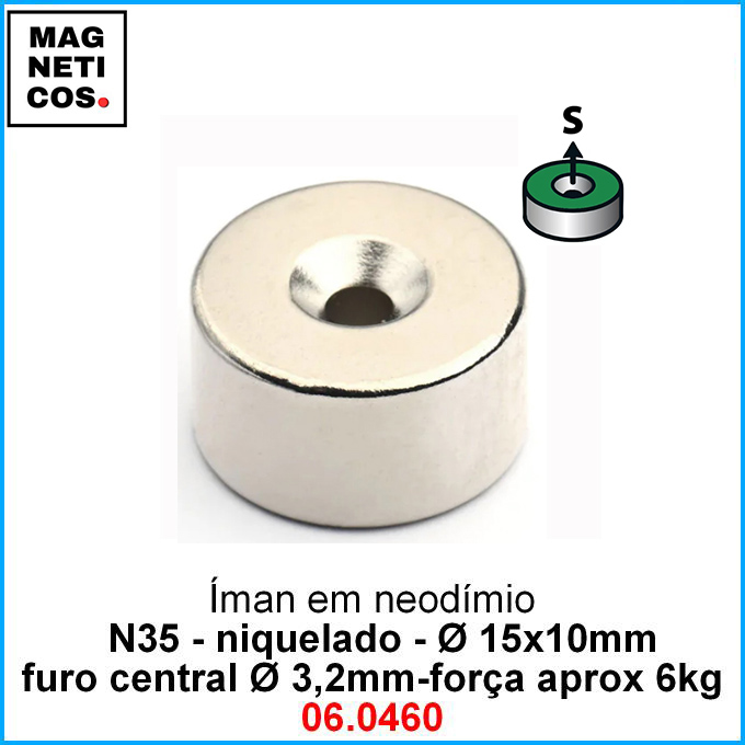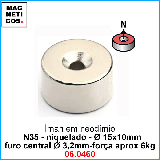 • Íman Neodímio N35 com furo para aparafusar-INCLUI IVA