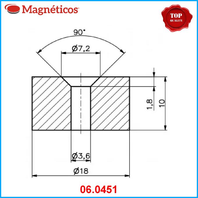 Íman Neodímio N42 com furo para aparafusar-INCLUI IVA