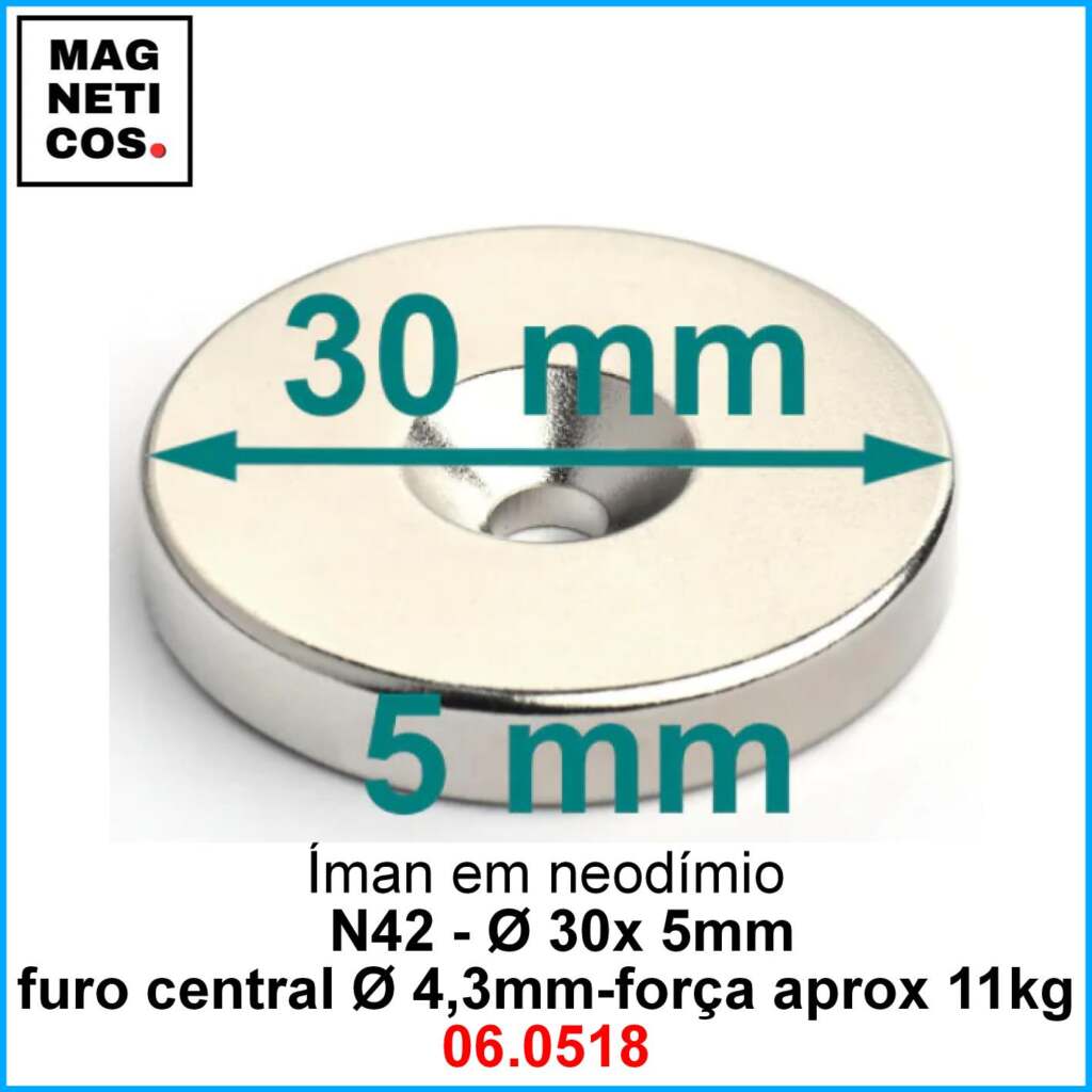 Íman Neodímio N35 com furo para aparafusar-INCLUI IVA